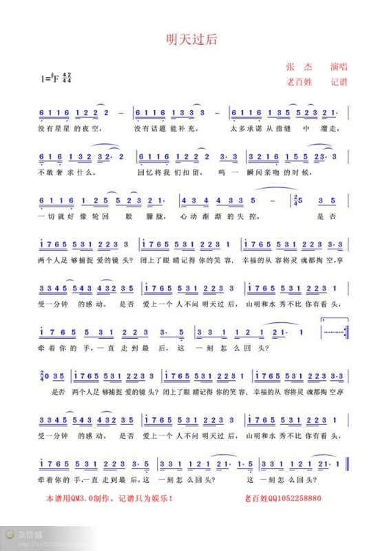 明天过后简谱上传者为网友上传,原创作者为网络转载,歌曲原唱歌手为佚名,本简谱为图片格式,表现形式为,音乐性质为流行金曲。