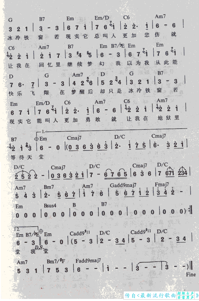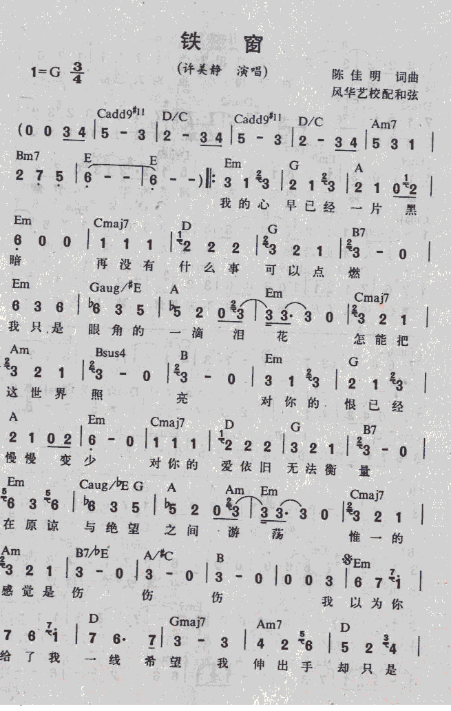 铁窗简谱上传者为网友上传,原创作者为网络转载,歌曲原唱歌手为佚名,本简谱为图片格式,表现形式为,音乐性质为流行金曲。