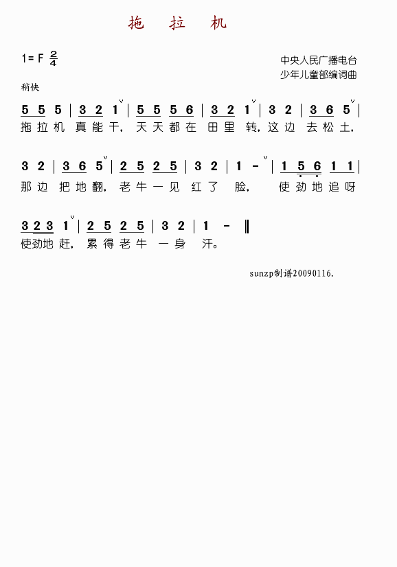 拖拉机简谱上传者为网友上传,原创作者为网络转载,歌曲原唱歌手为佚名,本简谱为图片格式,表现形式为,音乐性质为流行金曲。