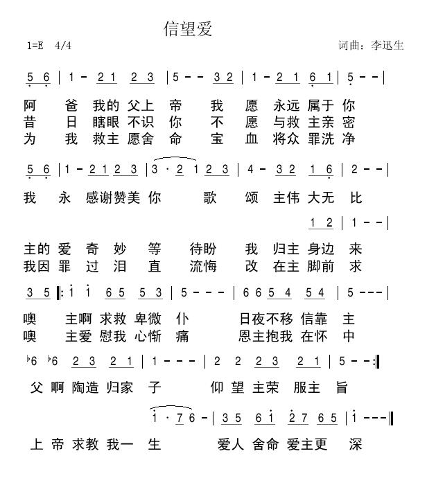信望爱简谱上传者为网友上传,原创作者为网络转载,歌曲原唱歌手为佚名,本简谱为图片格式,表现形式为,音乐性质为流行金曲。