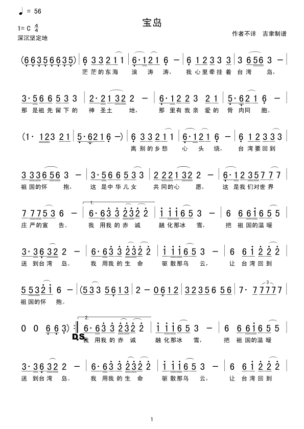 宝岛简谱上传者为网友上传,原创作者为网络转载,歌曲原唱歌手为佚名,本简谱为图片格式,表现形式为,音乐性质为流行金曲。