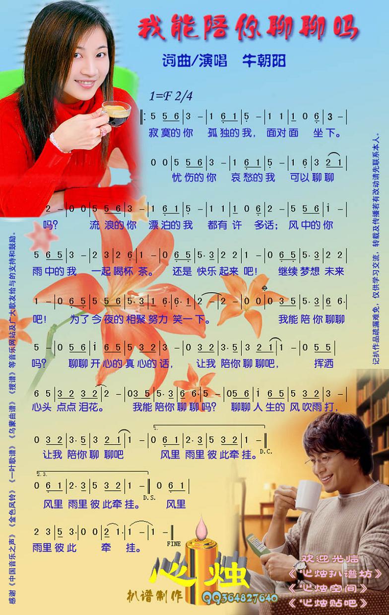 我能陪你聊聊吗简谱上传者为网友上传,原创作者为网络转载,歌曲原唱歌手为佚名,本简谱为图片格式,表现形式为,音乐性质为流行金曲。