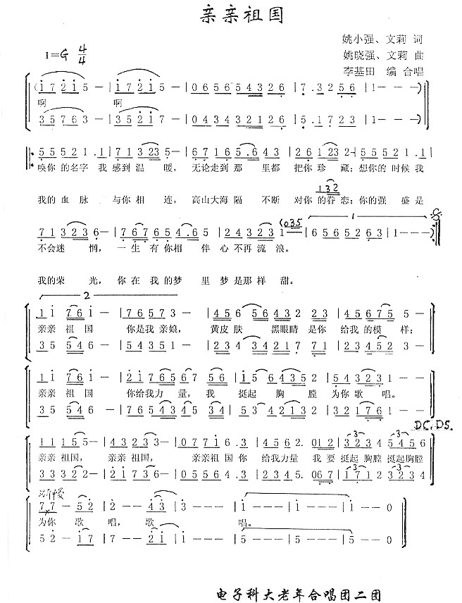 亲亲祖国简谱上传者为网友上传,原创作者为网络转载,歌曲原唱歌手为佚名,本简谱为图片格式,表现形式为,音乐性质为流行金曲。