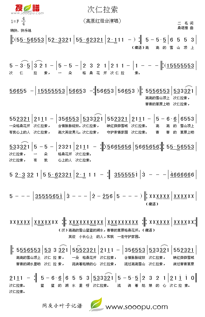 次仁拉索简谱上传者为网友上传,原创作者为网络转载,歌曲原唱歌手为佚名,本简谱为图片格式,表现形式为,音乐性质为流行金曲。