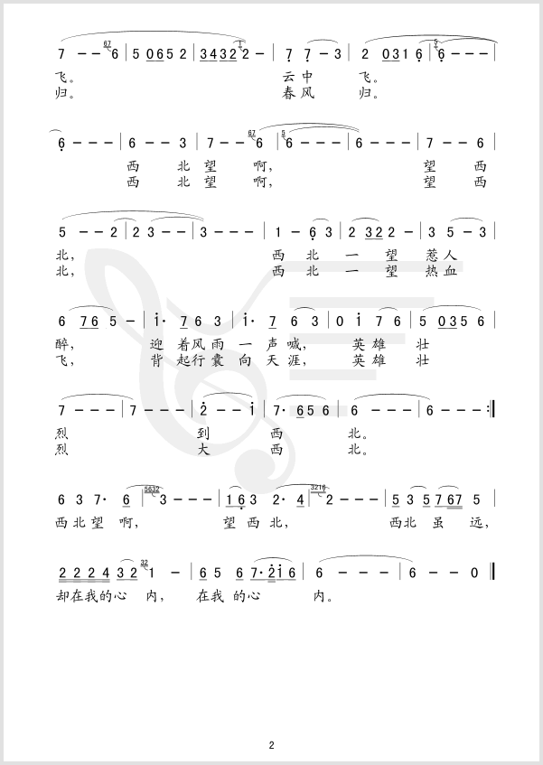 西北望简谱上传者为网友上传,原创作者为网络转载,歌曲原唱歌手为佚名,本简谱为图片格式,表现形式为,音乐性质为流行金曲。
