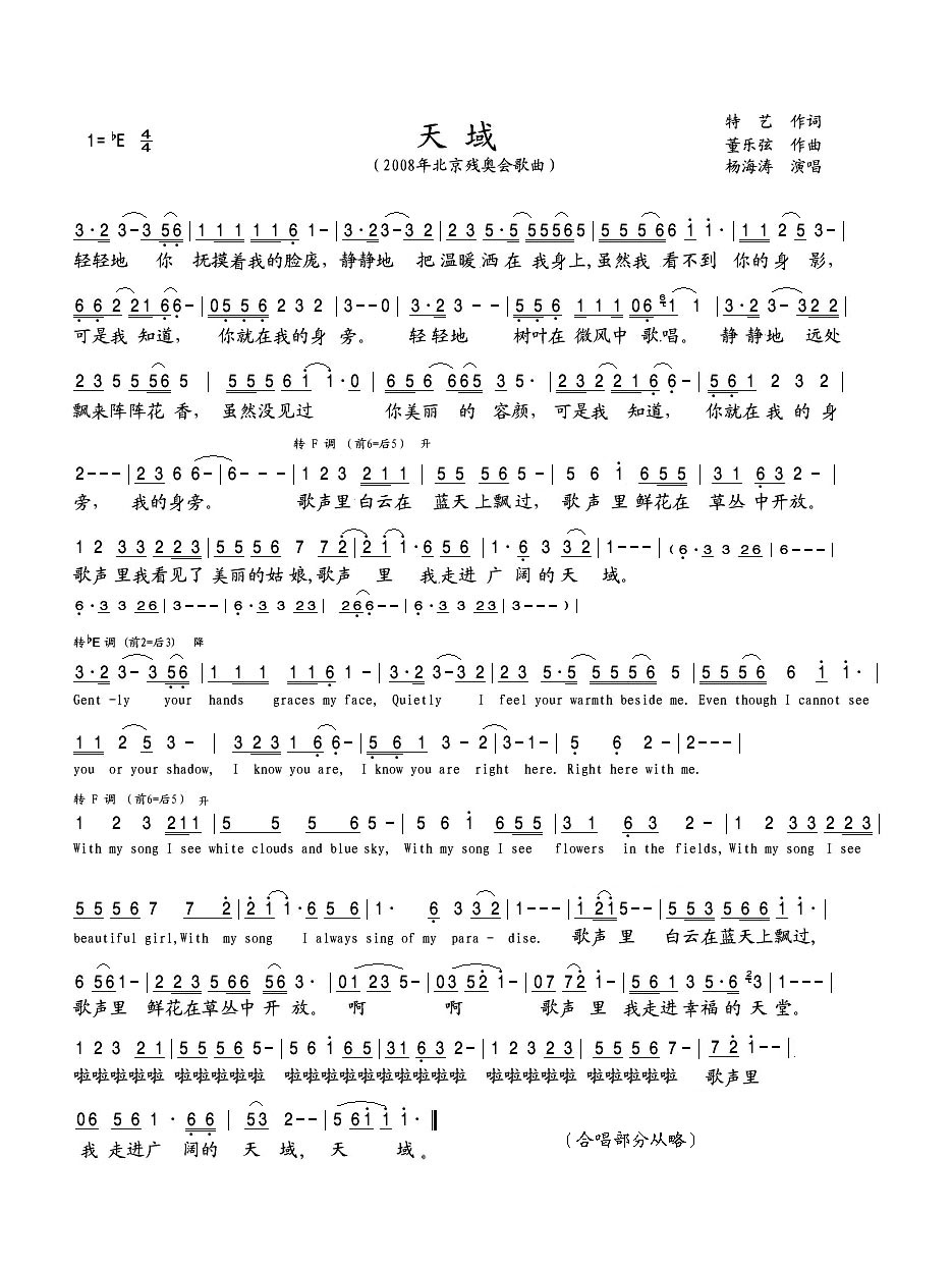 天域简谱上传者为网友上传,原创作者为网络转载,歌曲原唱歌手为佚名,本简谱为图片格式,表现形式为,音乐性质为流行金曲。