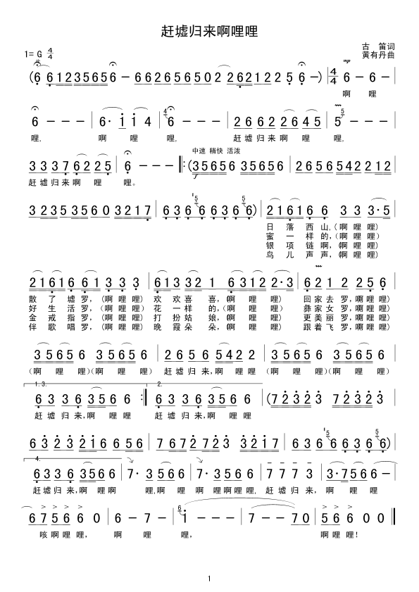 赶墟归来啊哩哩简谱上传者为网友上传,原创作者为网络转载,歌曲原唱歌手为佚名,本简谱为图片格式,表现形式为,音乐性质为流行金曲。