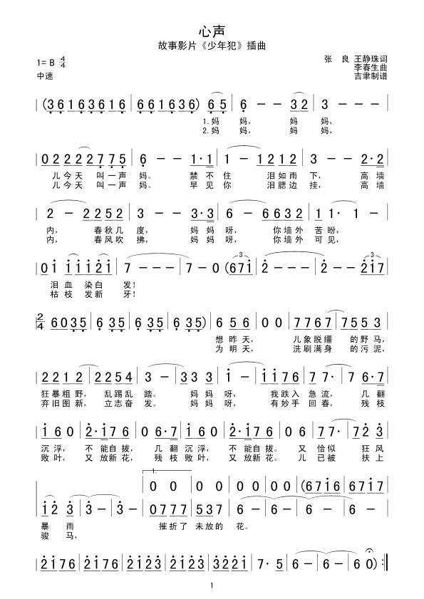 心声简谱上传者为网友上传,原创作者为网络转载,歌曲原唱歌手为佚名,本简谱为图片格式,表现形式为,音乐性质为流行金曲。