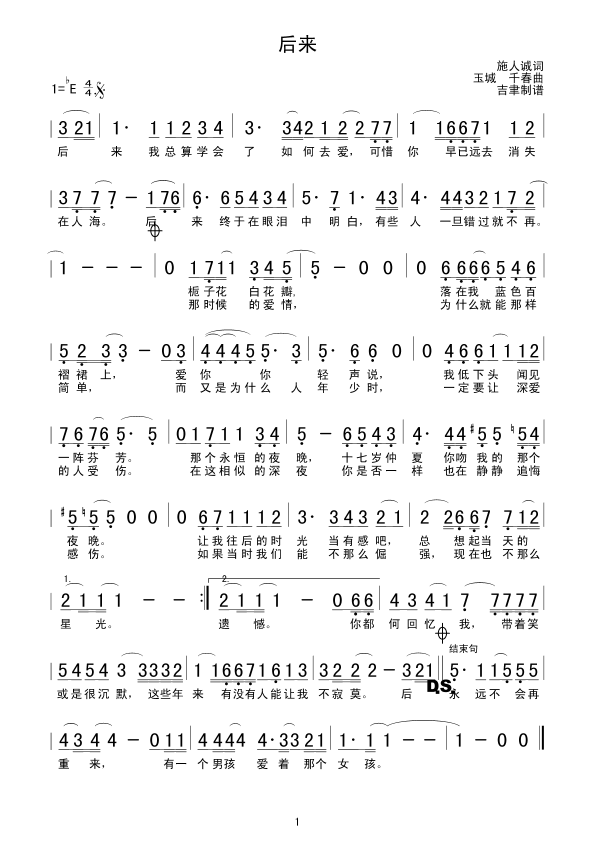 后来简谱上传者为网友上传,原创作者为网络转载,歌曲原唱歌手为佚名,本简谱为图片格式,表现形式为,音乐性质为流行金曲。
