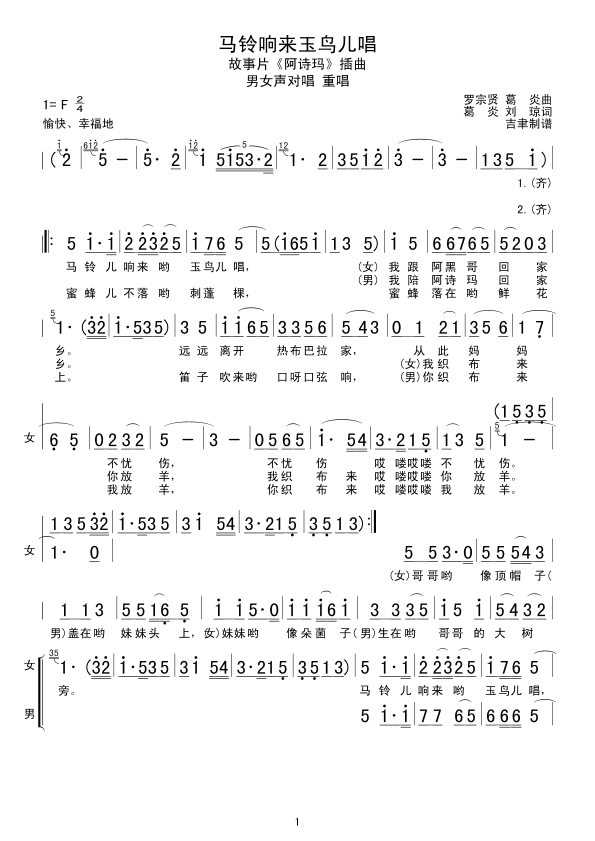 马铃响来玉鸟儿唱简谱上传者为网友上传,原创作者为网络转载,歌曲原唱歌手为佚名,本简谱为图片格式,表现形式为,音乐性质为流行金曲。