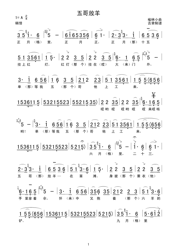 五哥放羊简谱上传者为网友上传,原创作者为网络转载,歌曲原唱歌手为佚名,本简谱为图片格式,表现形式为,音乐性质为流行金曲。
