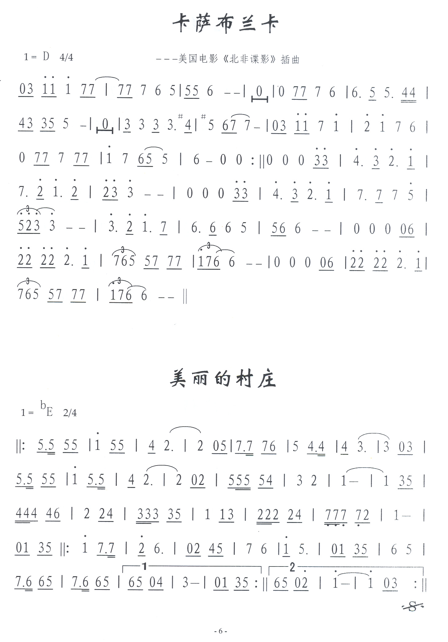 卡萨布兰卡简谱上传者为网友上传,原创作者为网络转载,歌曲原唱歌手为佚名,本简谱为图片格式,表现形式为,音乐性质为流行金曲。
