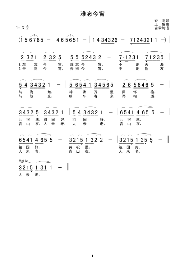 难忘今宵简谱上传者为网友上传,原创作者为网络转载,歌曲原唱歌手为佚名,本简谱为图片格式,表现形式为,音乐性质为流行金曲。