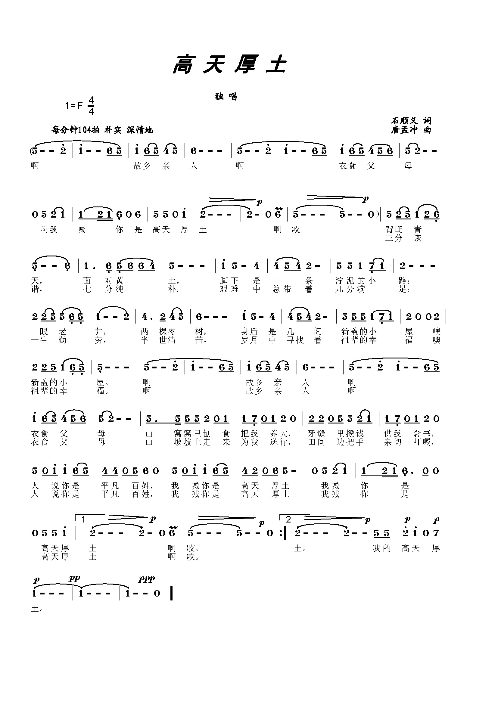 高天厚土简谱上传者为网友上传,原创作者为网络转载,歌曲原唱歌手为佚名,本简谱为图片格式,表现形式为,音乐性质为流行金曲。