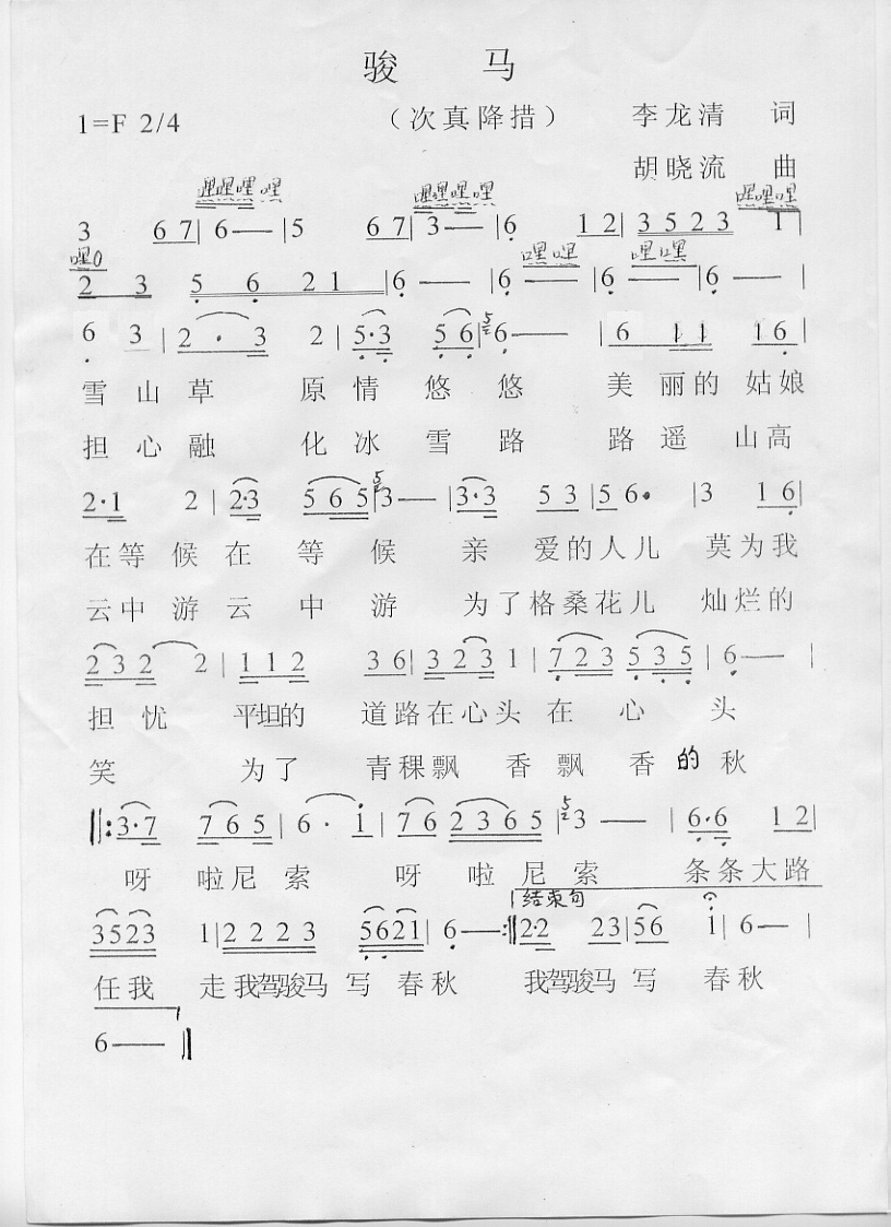骏马简谱上传者为网友上传,原创作者为网络转载,歌曲原唱歌手为佚名,本简谱为图片格式,表现形式为,音乐性质为流行金曲。