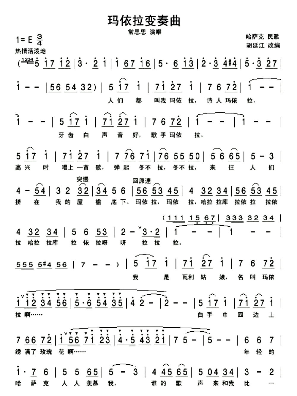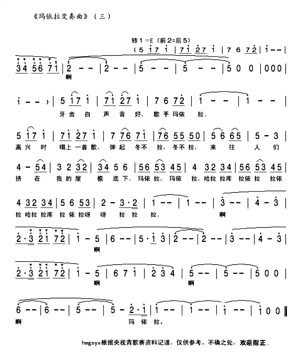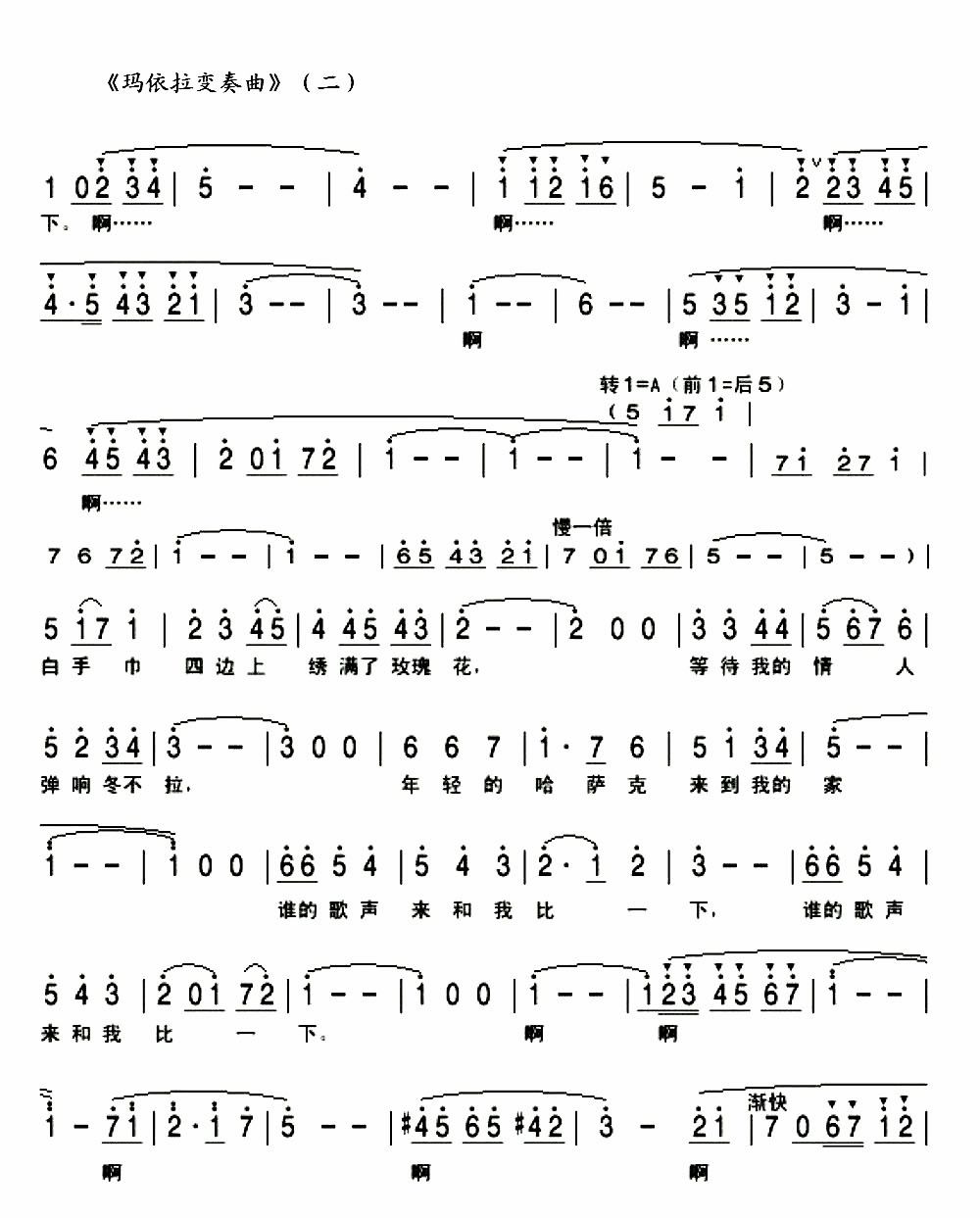 玛依拉变奏曲简谱