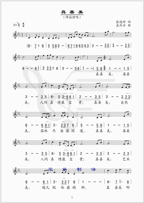 真善美简谱上传者为网友上传,原创作者为网络转载,歌曲原唱歌手为佚名,本简谱为图片格式,表现形式为,音乐性质为流行金曲。