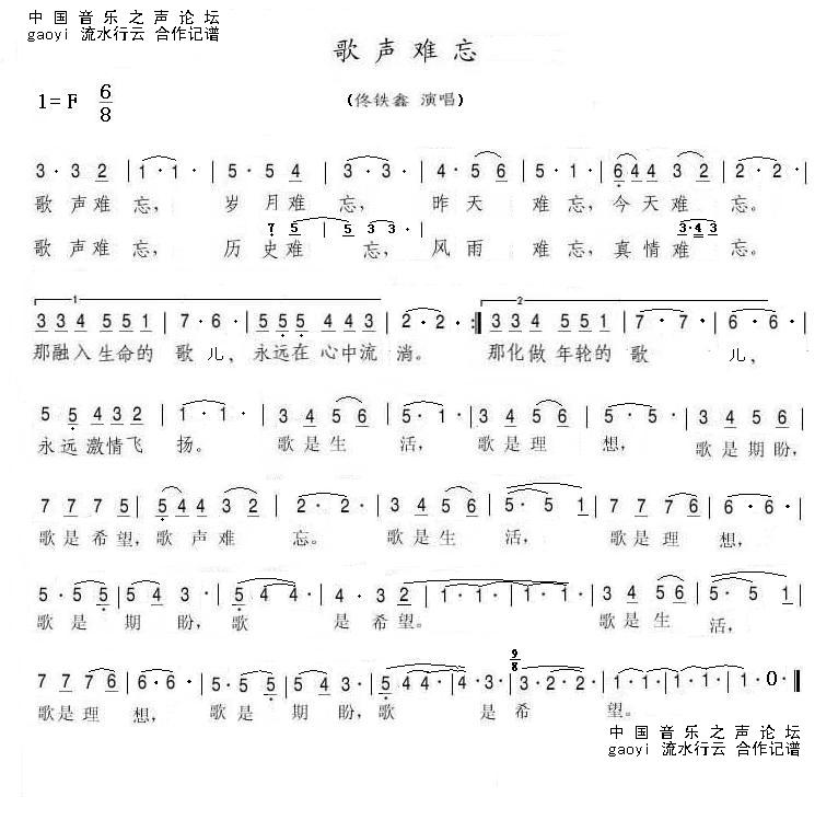 歌声难忘简谱上传者为网友上传,原创作者为网络转载,歌曲原唱歌手为佚名,本简谱为图片格式,表现形式为,音乐性质为流行金曲。