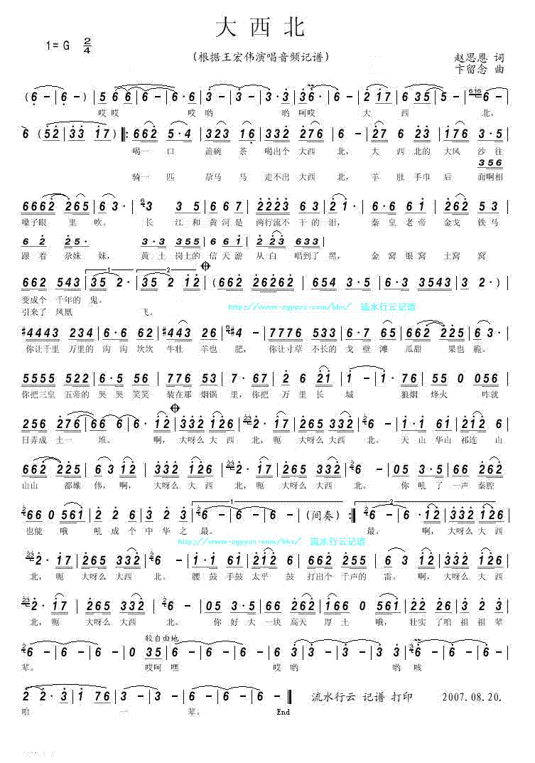 大西北简谱上传者为网友上传,原创作者为网络转载,歌曲原唱歌手为佚名,本简谱为图片格式,表现形式为,音乐性质为流行金曲。
