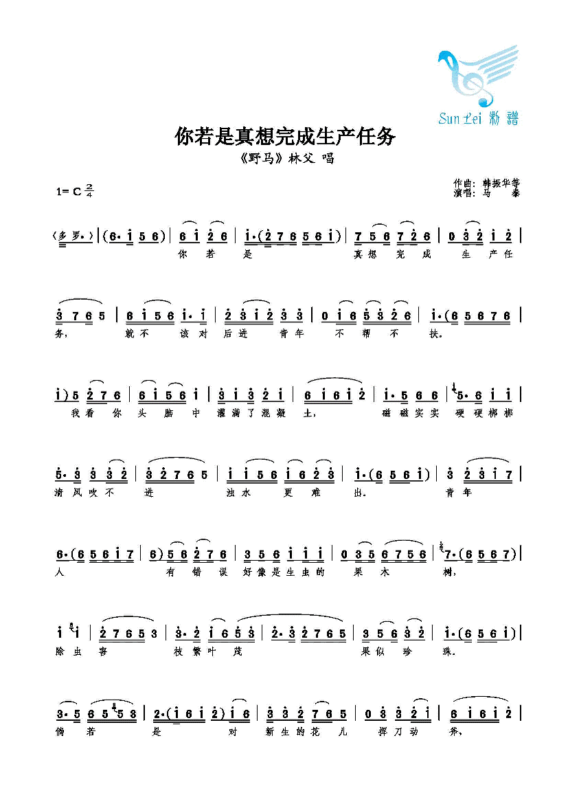 你若是真想完成生产任务简谱上传者为网友上传,原创作者为网络转载,歌曲原唱歌手为佚名,本简谱为图片格式,表现形式为,音乐性质为流行金曲。