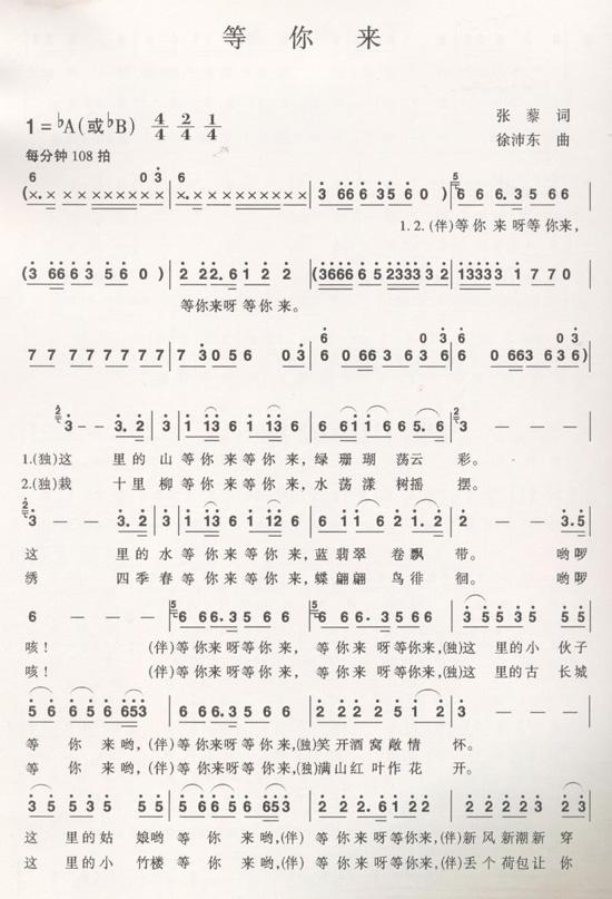 等你来简谱上传者为网友上传,原创作者为网络转载,歌曲原唱歌手为佚名,本简谱为图片格式,表现形式为,音乐性质为流行金曲。