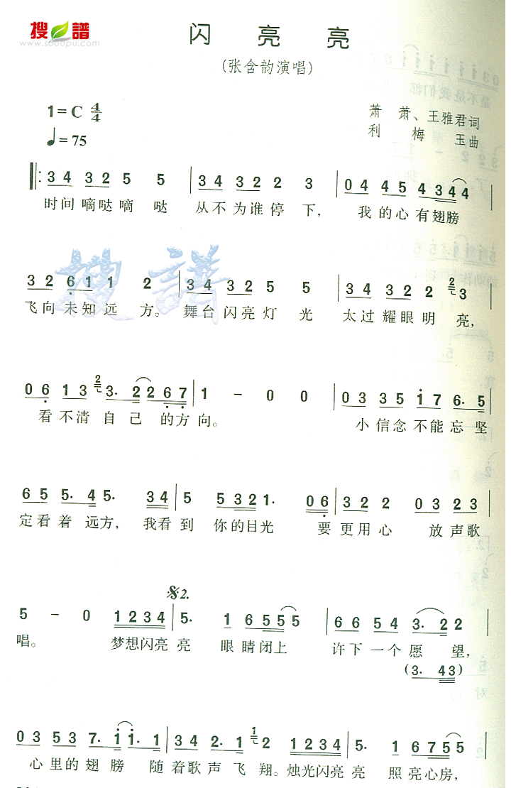 闪亮亮简谱上传者为网友上传,原创作者为网络转载,歌曲原唱歌手为佚名,本简谱为图片格式,表现形式为,音乐性质为流行金曲。