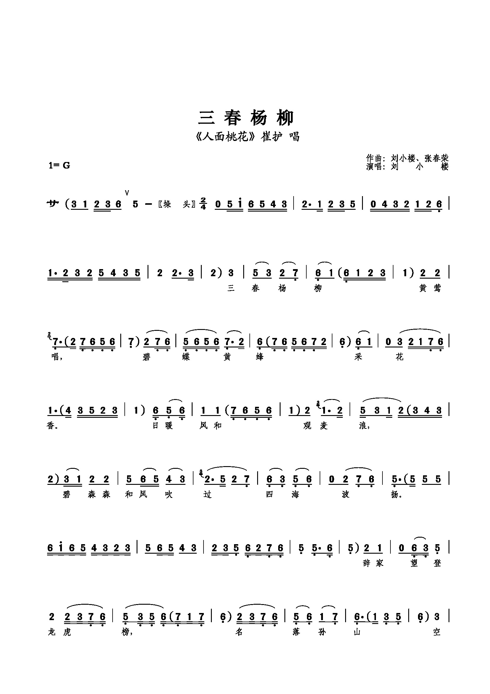 三春杨柳简谱上传者为网友上传,原创作者为网络转载,歌曲原唱歌手为佚名,本简谱为图片格式,表现形式为,音乐性质为流行金曲。