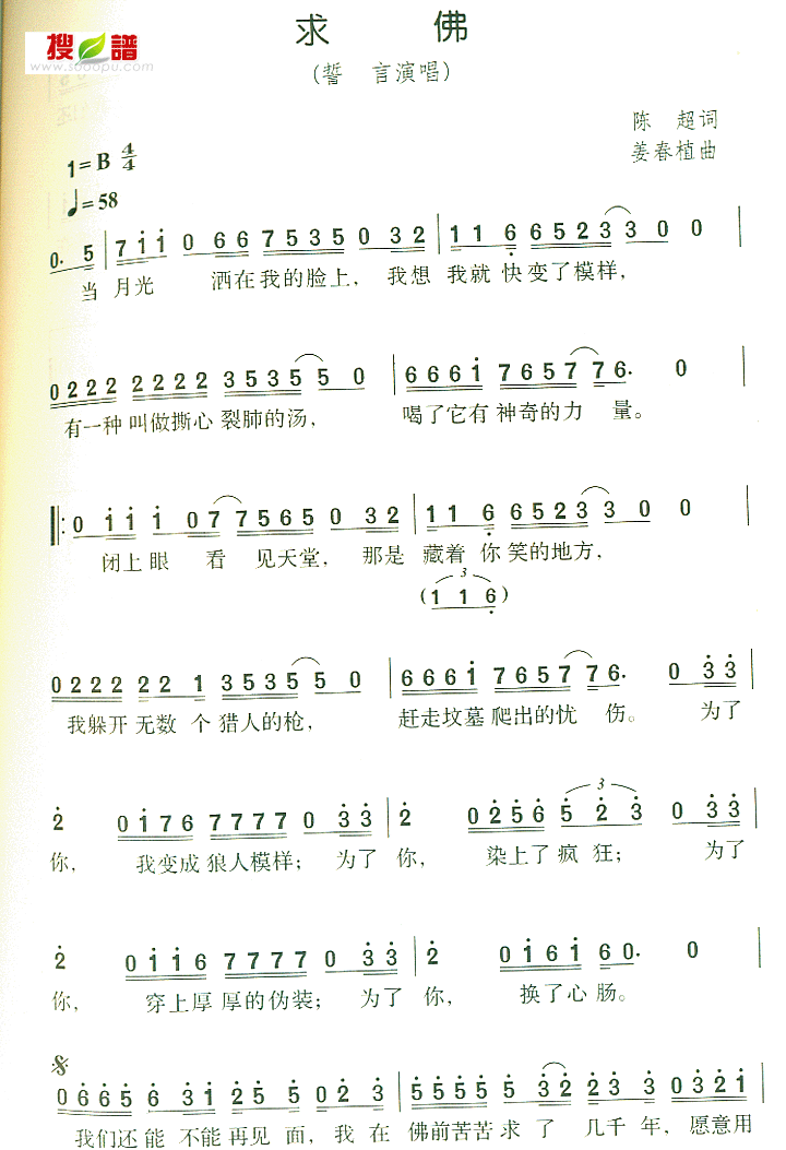 求佛简谱上传者为网友上传,原创作者为网络转载,歌曲原唱歌手为佚名,本简谱为图片格式,表现形式为,音乐性质为流行金曲。