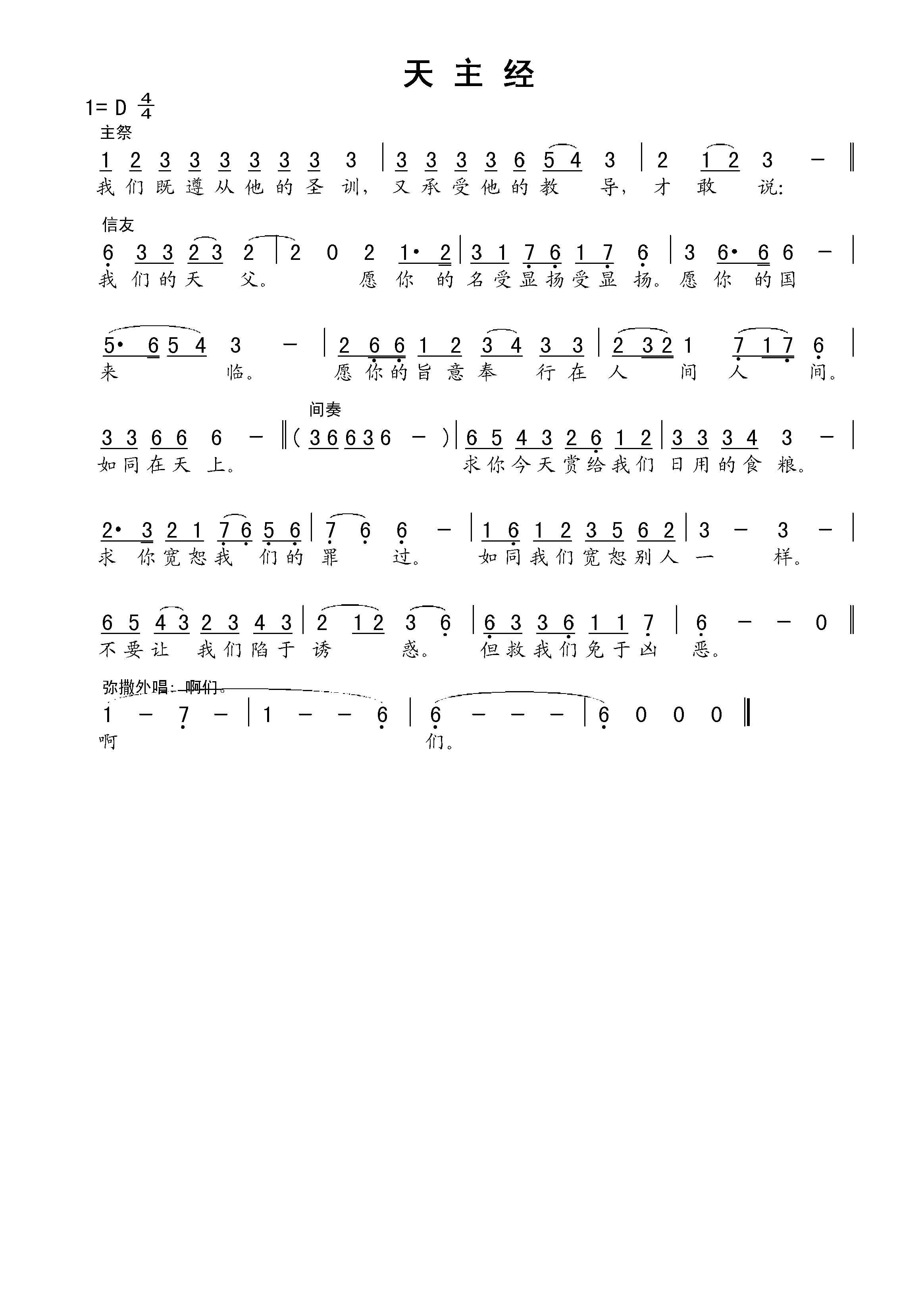 天主经简谱上传者为网友上传,原创作者为网络转载,歌曲原唱歌手为佚名,本简谱为图片格式,表现形式为,音乐性质为流行金曲。