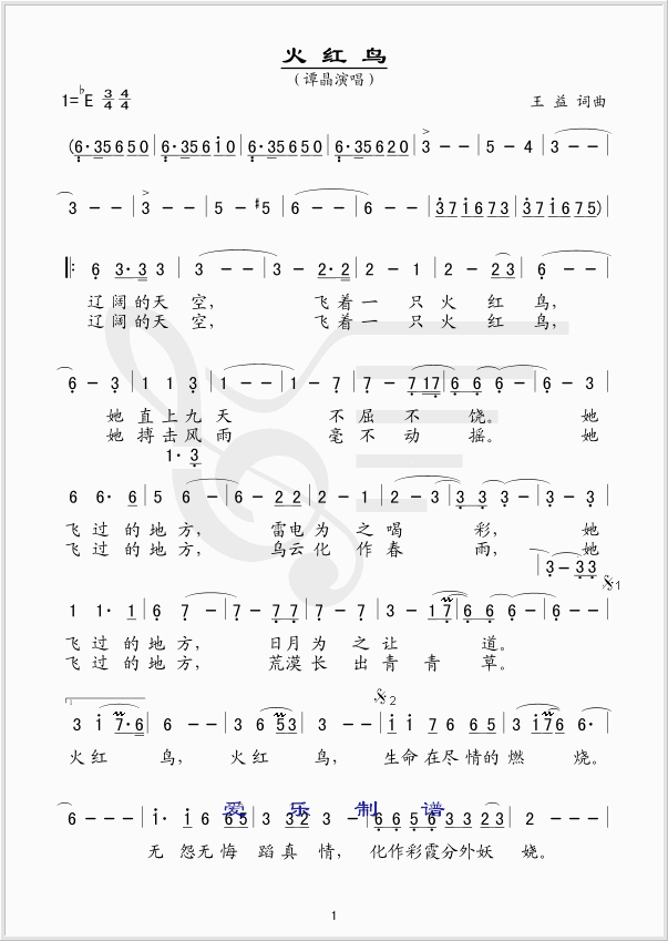 火红鸟简谱上传者为网友上传,原创作者为网络转载,歌曲原唱歌手为佚名,本简谱为图片格式,表现形式为,音乐性质为流行金曲。