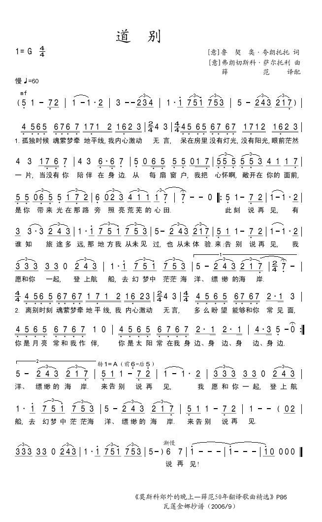 道别简谱上传者为网友上传,原创作者为网络转载,歌曲原唱歌手为佚名,本简谱为图片格式,表现形式为,音乐性质为流行金曲。