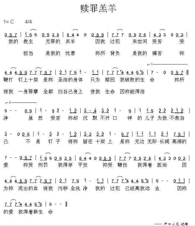 赎罪羔羊简谱上传者为网友上传,原创作者为网络转载,歌曲原唱歌手为佚名,本简谱为图片格式,表现形式为,音乐性质为流行金曲。