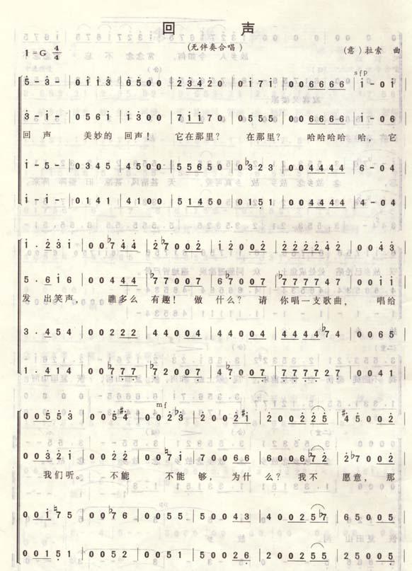 回声简谱上传者为网友上传,原创作者为网络转载,歌曲原唱歌手为佚名,本简谱为图片格式,表现形式为,音乐性质为流行金曲。