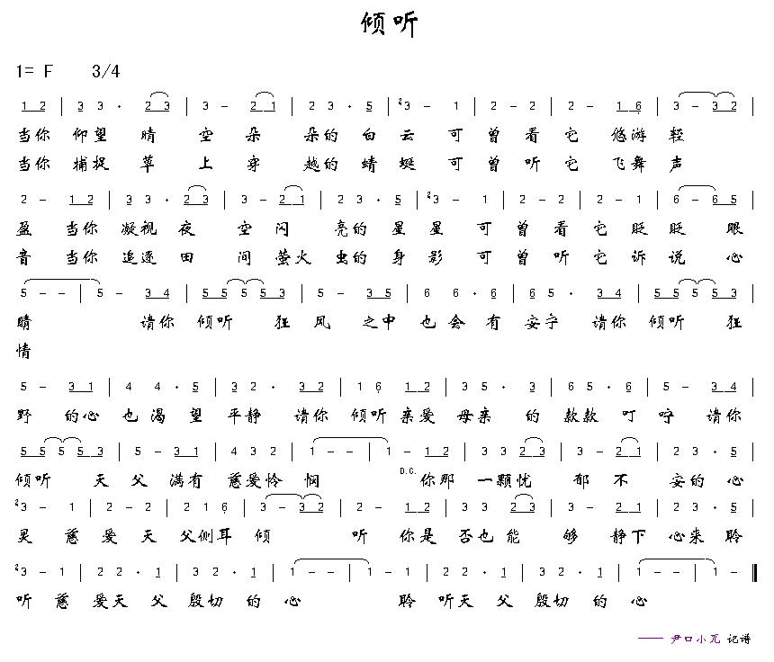 倾听简谱上传者为网友上传,原创作者为网络转载,歌曲原唱歌手为佚名,本简谱为图片格式,表现形式为,音乐性质为流行金曲。