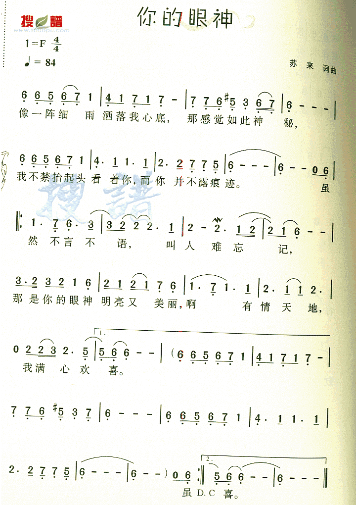 你的眼神简谱上传者为网友上传,原创作者为网络转载,歌曲原唱歌手为佚名,本简谱为图片格式,表现形式为,音乐性质为流行金曲。