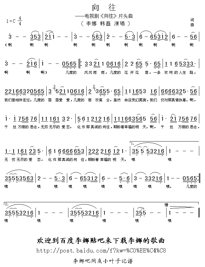 向往简谱上传者为网友上传,原创作者为网络转载,歌曲原唱歌手为佚名,本简谱为图片格式,表现形式为,音乐性质为流行金曲。