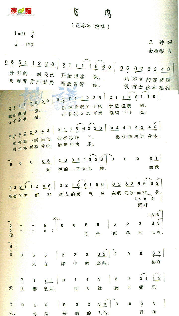 飞鸟简谱上传者为网友上传,原创作者为网络转载,歌曲原唱歌手为佚名,本简谱为图片格式,表现形式为,音乐性质为流行金曲。