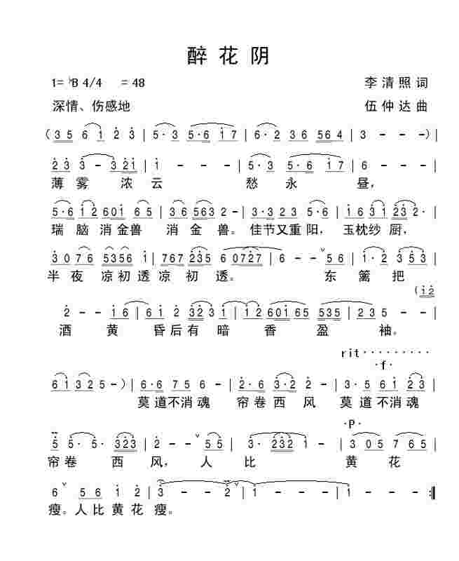 醉花阴简谱上传者为网友上传,原创作者为网络转载,歌曲原唱歌手为佚名,本简谱为图片格式,表现形式为,音乐性质为流行金曲。