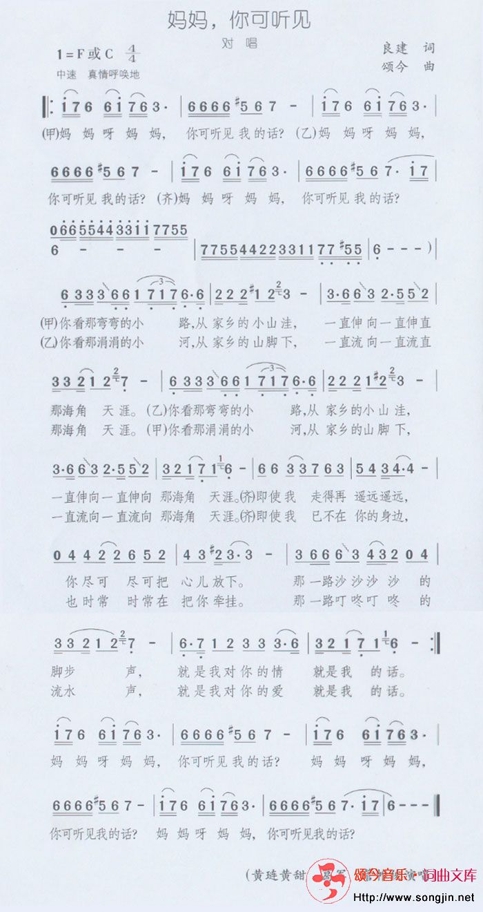 妈妈你可听见简谱上传者为网友上传,原创作者为网络转载,歌曲原唱歌手为佚名,本简谱为图片格式,表现形式为,音乐性质为流行金曲。