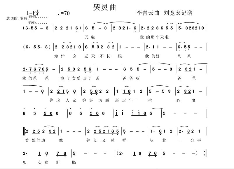 哭灵曲简谱上传者为网友上传,原创作者为网络转载,歌曲原唱歌手为佚名,本简谱为图片格式,表现形式为,音乐性质为流行金曲。