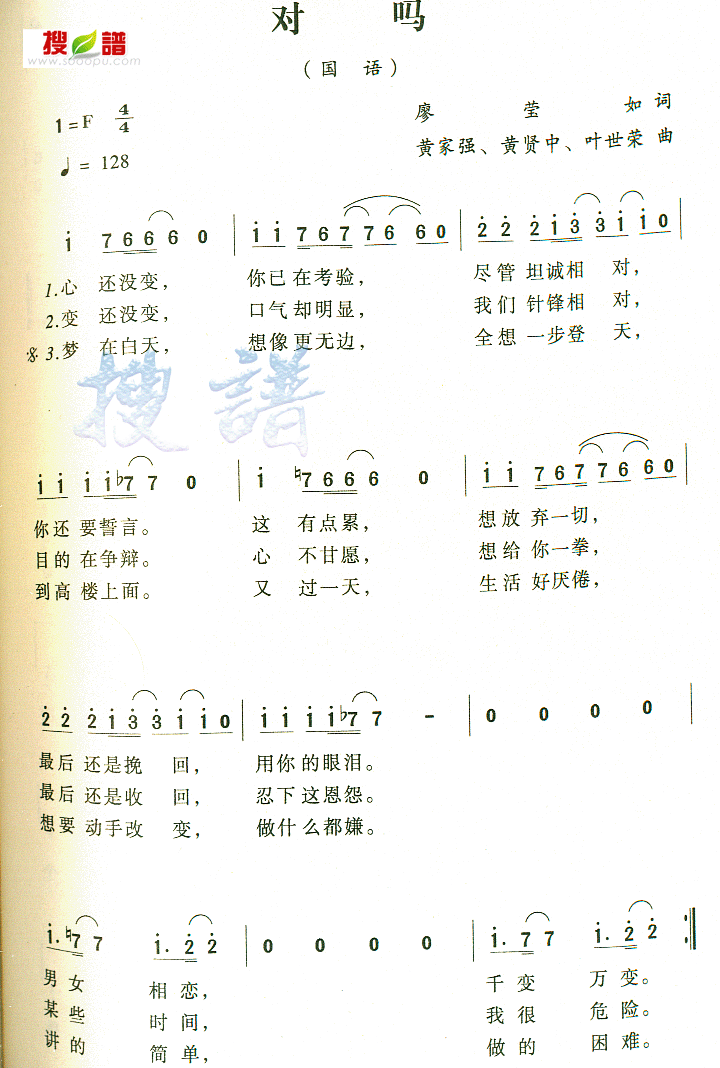 对吗简谱上传者为网友上传,原创作者为网络转载,歌曲原唱歌手为佚名,本简谱为图片格式,表现形式为,音乐性质为流行金曲。