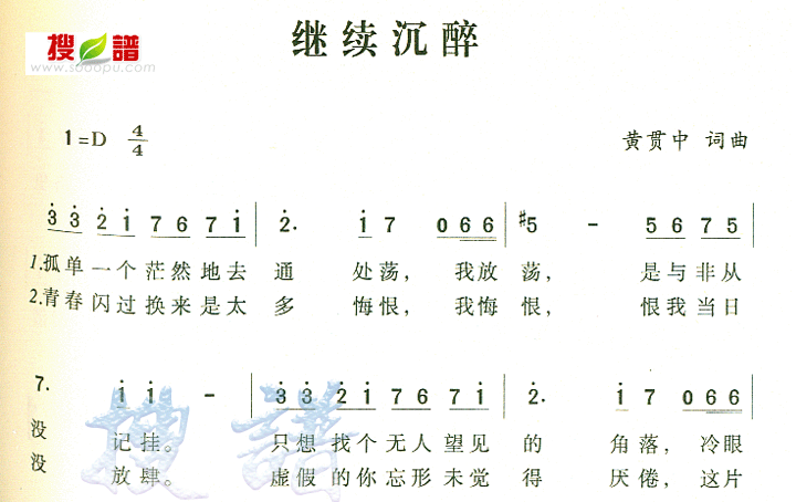 继续沉醉简谱上传者为网友上传,原创作者为网络转载,歌曲原唱歌手为佚名,本简谱为图片格式,表现形式为,音乐性质为流行金曲。