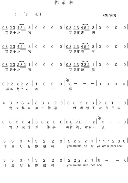 你最棒简谱上传者为网友上传,原创作者为网络转载,歌曲原唱歌手为佚名,本简谱为图片格式,表现形式为,音乐性质为流行金曲。