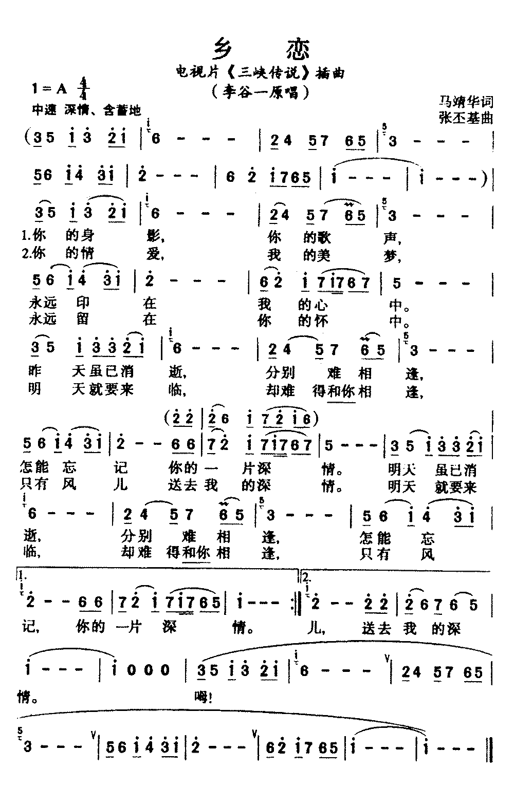 乡恋简谱