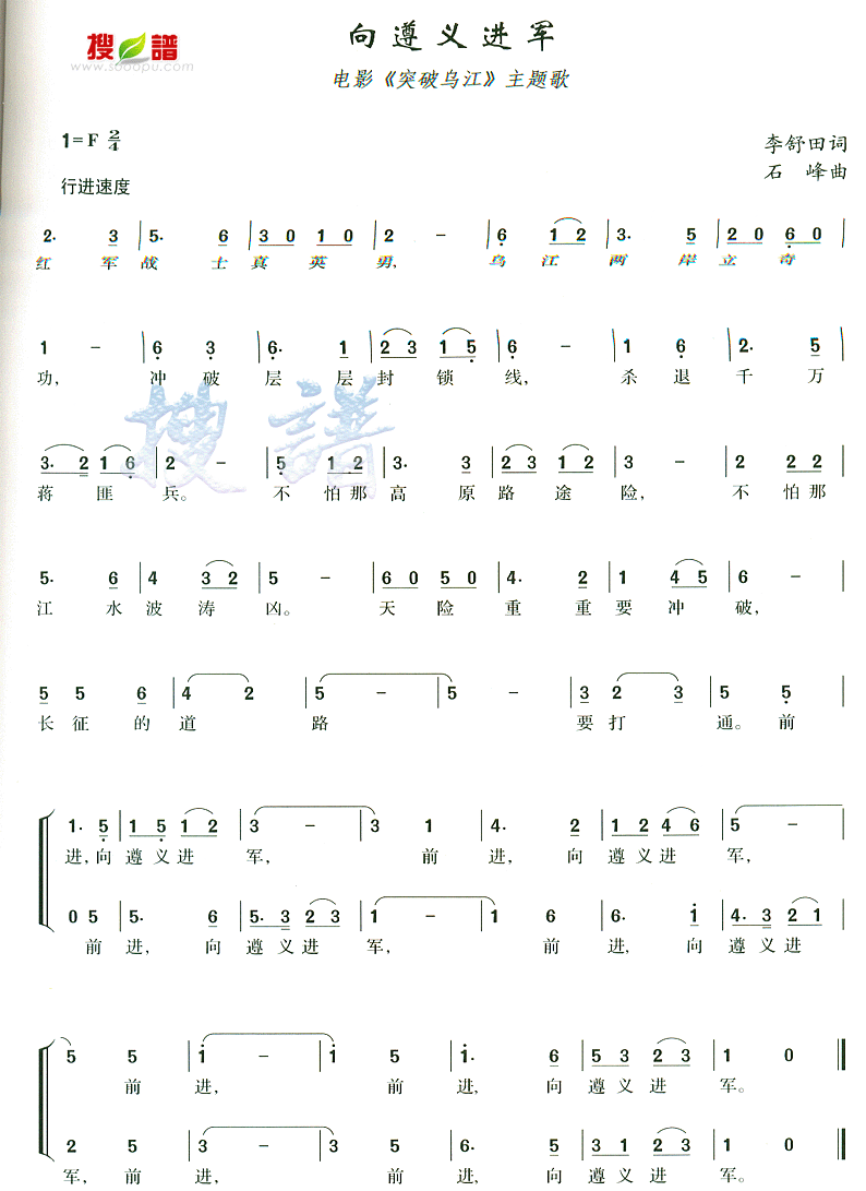 向遵义进军简谱上传者为网友上传,原创作者为网络转载,歌曲原唱歌手为佚名,本简谱为图片格式,表现形式为,音乐性质为流行金曲。
