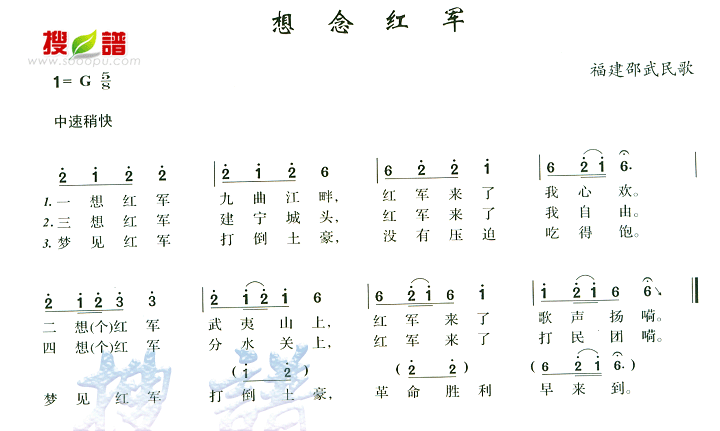 想念红军简谱上传者为网友上传,原创作者为网络转载,歌曲原唱歌手为佚名,本简谱为图片格式,表现形式为,音乐性质为流行金曲。