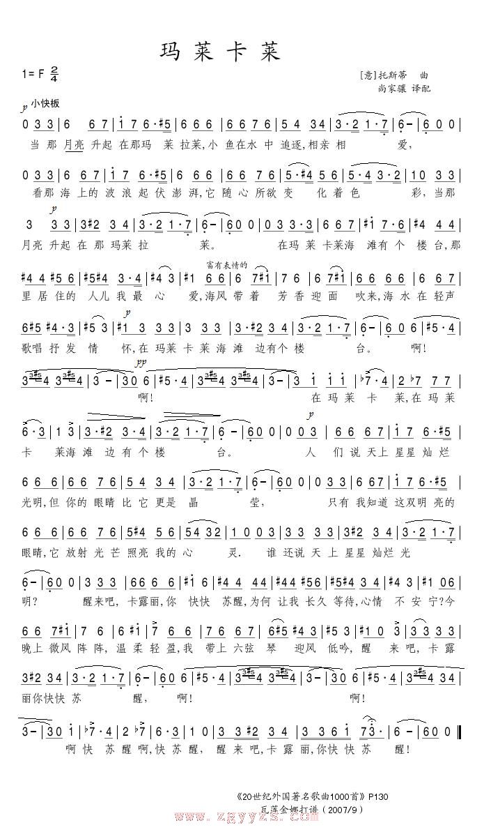 玛莱卡莱简谱上传者为网友上传,原创作者为网络转载,歌曲原唱歌手为佚名,本简谱为图片格式,表现形式为,音乐性质为流行金曲。