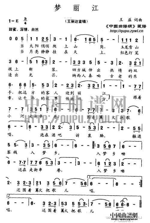 梦丽江简谱