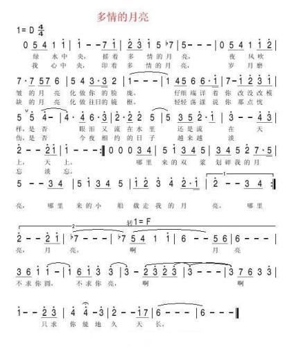多情的月亮简谱上传者为网友上传,原创作者为网络转载,歌曲原唱歌手为佚名,本简谱为图片格式,表现形式为,音乐性质为流行金曲。