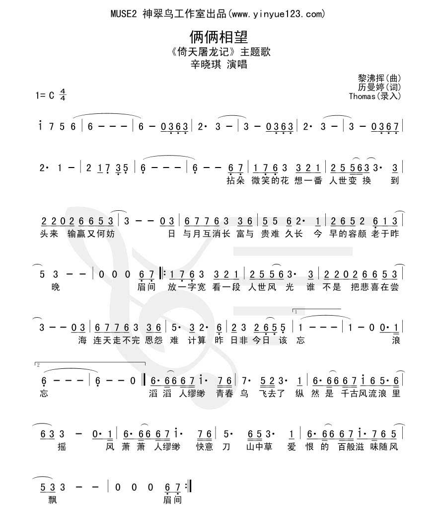 俩俩相忘简谱上传者为网友上传,原创作者为网络转载,歌曲原唱歌手为佚名,本简谱为图片格式,表现形式为,音乐性质为流行金曲。